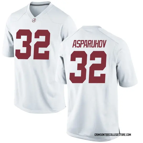 As a true Alabama Crimson Tide fan you definitely support Alex Asparuhov. The best way to do that is with this Replica jersey. This is the perfect jersey for any fan looking to bulk up their collection of Alabama Crimson Tide player-inspired gear. It features your favorite player's name in his college colors. The bold team and Alex Asparuhov graphics will make you proud to be the die-hard fan you are.