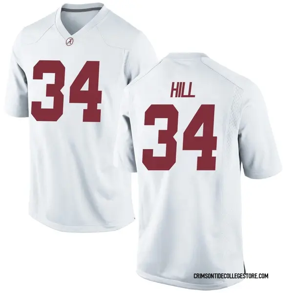 As a true Alabama Crimson Tide fan you definitely support London Hill. The best way to do that is with this Replica jersey. This is the perfect jersey for any fan looking to bulk up their collection of Alabama Crimson Tide player-inspired gear. It features your favorite player's name in his college colors. The bold team and London Hill graphics will make you proud to be the die-hard fan you are.