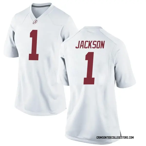 As a true Alabama Crimson Tide fan you definitely support Domani Jackson. The best way to do that is with this Replica jersey. This is the perfect jersey for any fan looking to bulk up their collection of Alabama Crimson Tide player-inspired gear. It features your favorite player's name in his college colors. The bold team and Domani Jackson graphics will make you proud to be the die-hard fan you are.