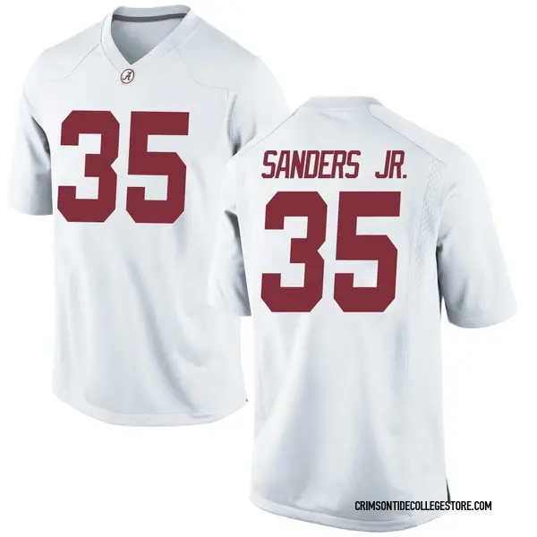 As a true Alabama Crimson Tide fan you definitely support Abduall Sanders Jr.. The best way to do that is with this Replica jersey. This is the perfect jersey for any fan looking to bulk up their collection of Alabama Crimson Tide player-inspired gear. It features your favorite player's name in his college colors. The bold team and Abduall Sanders Jr. graphics will make you proud to be the die-hard fan you are.