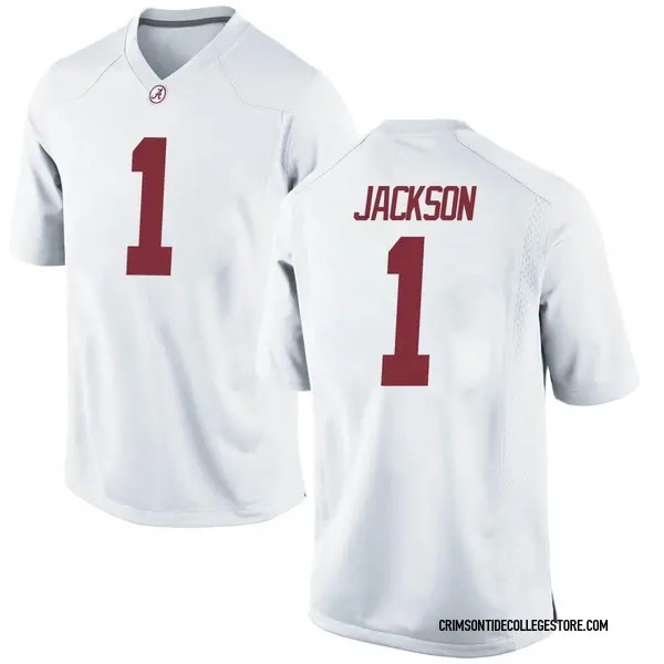 As a true Alabama Crimson Tide fan you definitely support Domani Jackson. The best way to do that is with this Replica jersey. This is the perfect jersey for any fan looking to bulk up their collection of Alabama Crimson Tide player-inspired gear. It features your favorite player's name in his college colors. The bold team and Domani Jackson graphics will make you proud to be the die-hard fan you are.