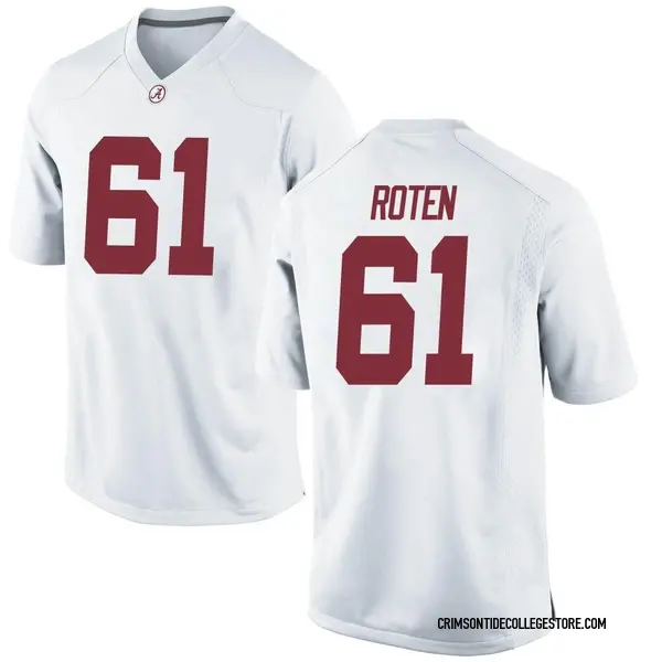 As a true Alabama Crimson Tide fan you definitely support Graham Roten. The best way to do that is with this Replica jersey. This is the perfect jersey for any fan looking to bulk up their collection of Alabama Crimson Tide player-inspired gear. It features your favorite player's name in his college colors. The bold team and Graham Roten graphics will make you proud to be the die-hard fan you are.